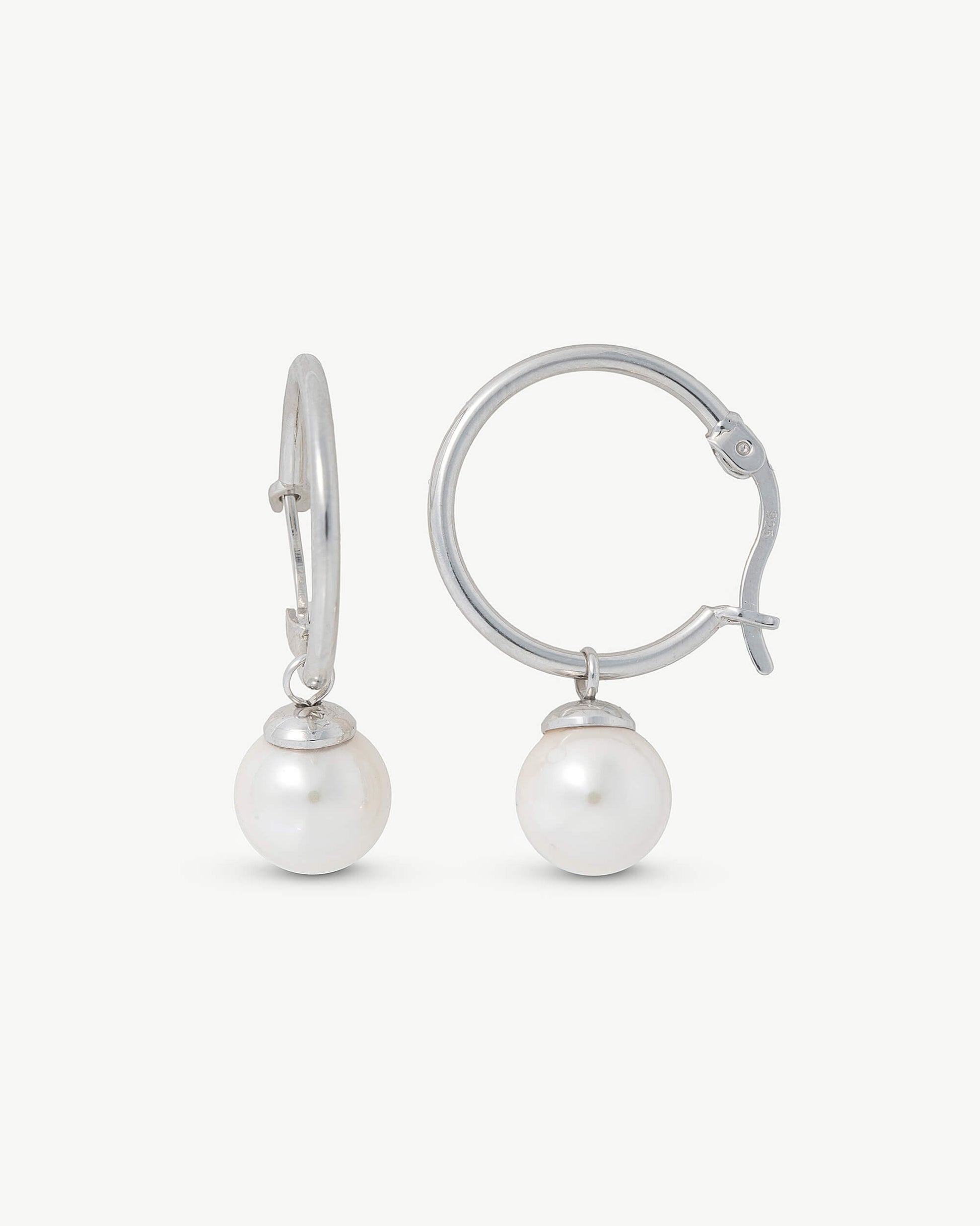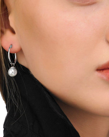 Pendientes de aro con criolla en plata y perlas redondas blancas de 8mm.