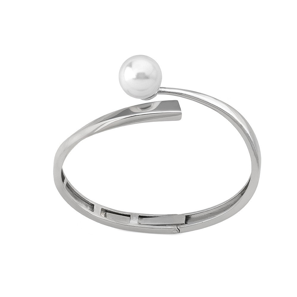 Brazalete rígido 58x46mm en plata, 12mm perla redonda blanca.
