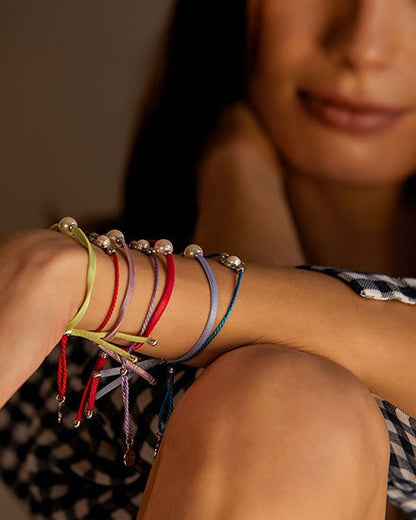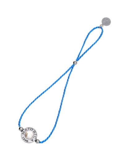 Brazalete trenzado azul ajustable en acero con perla media bola de 6mm.. Inspirada en la belleza de las Islas Eolias, la colección Lipari, con sus pulseras de cordón trenzado ajustable en diversos colores, corona su centro una perla orgánica de media bola, son muetras de la maestria a la jora de unir elementos y materiales, con la sofisticación de una perla made in Majorica.