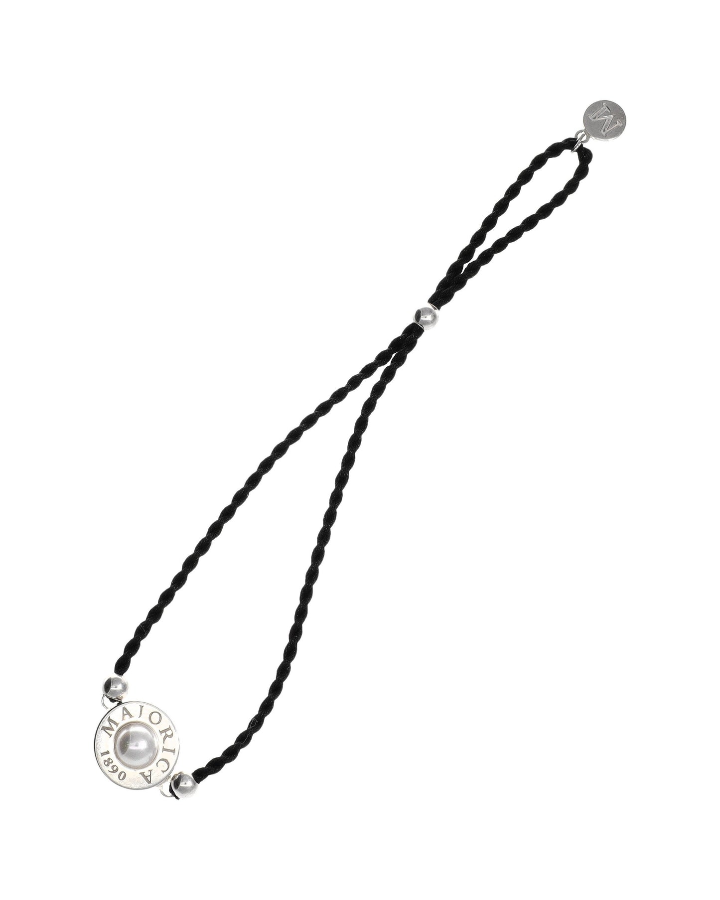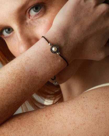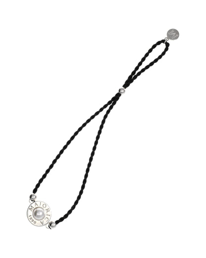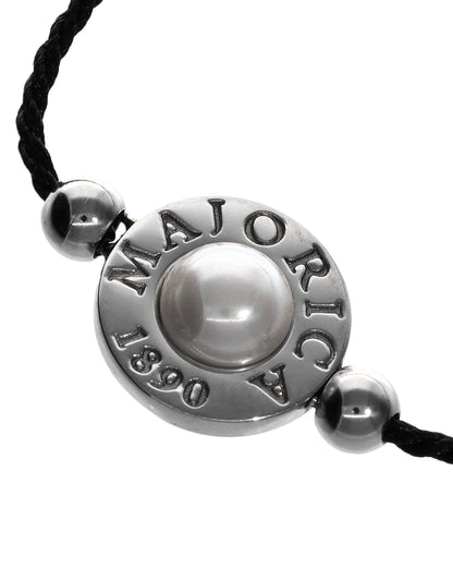Brazalete trenzado negro ajustable en acero con perla media bola de 6mm.. Inspirada en la belleza de las Islas Eolias, la colección Lipari, con sus pulseras de cordón trenzado ajustable en diversos colores, corona su centro una perla orgánica de media bola, son muetras de la maestria a la jora de unir elementos y materiales, con la sofisticación de una perla made in Majorica.