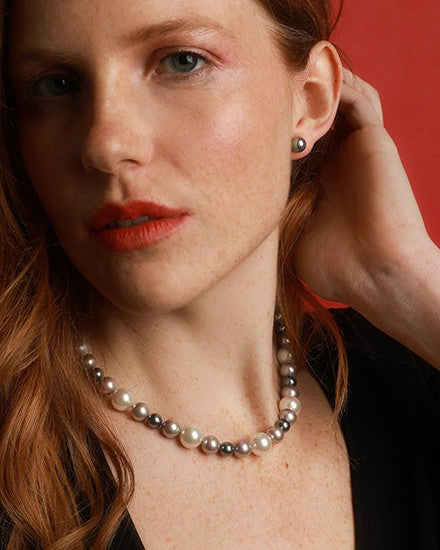 Collar corto de 46cm en plata, con perlas redondas de 8-12mm blanca, gris y nuage.